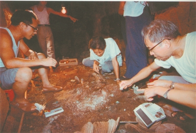 考古學家麥英豪在南越王墓主棺室發掘(1983年)