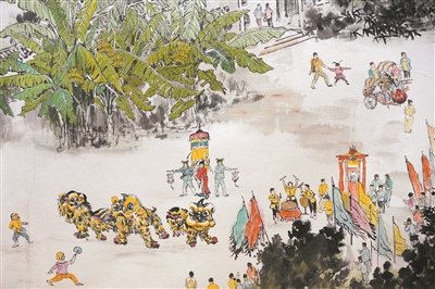 《西關(guān)印記》長卷展現(xiàn)的舞獅習(xí)俗