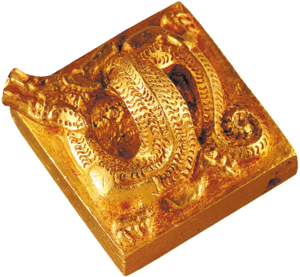 南越王墓還出土了“文帝行璽”金印,印鈕是一條游龍,這是我國目前考古發現的最大的西漢金印。有研究表明,龍代表皇權,是西漢以后才逐漸形成的。考古發現的漢代眾多諸侯王墓、列侯墓出土的器物中,龍紋隨處可見,說明西漢早期龍紋尚未形成獨尊地位。相比之下,在整個西漢考古發現的璽印中,南越文王趙眜的“文帝行璽”龍鈕金印是非常獨特的存在。