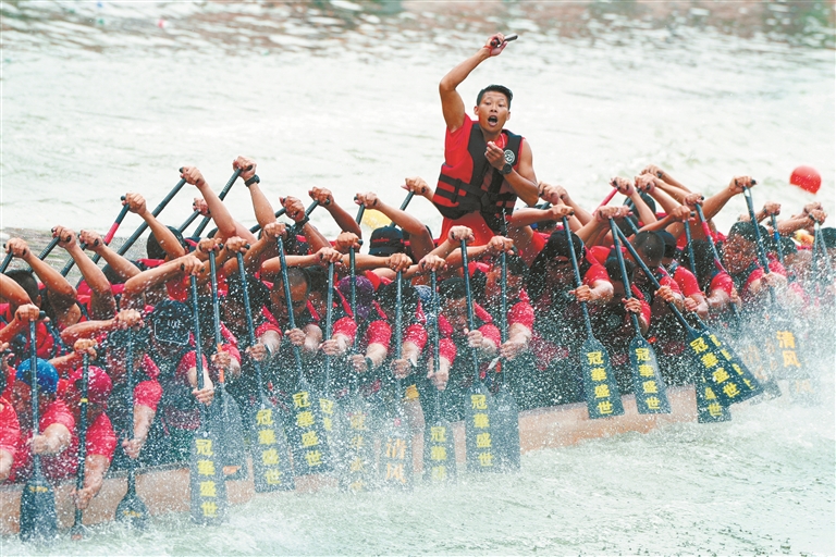 2008年,廣州“扒龍舟”被列入廣東省非遺代表性項目名錄。廣府地區許多龍舟隊多次在大賽中獲獎,成為嶺南文化走向世界的使者。北京冬奧會開幕式上,一個龍頭帶著水花浮出水面,正是黃埔區非遺項目“龍舟龍頭、龍尾制作技藝”傳承人張偉潮的作品。