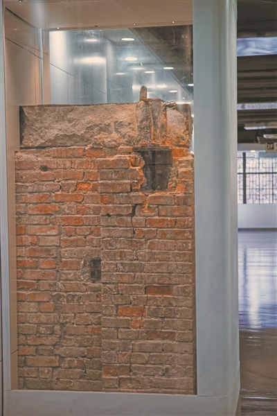 在廣州華僑博物館,玻璃保護(hù)起一段老建筑的磚墻。
