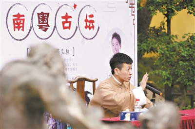 《廣州話正音字典》出版3年后,61歲的顏志圖在文化公園重開“羊城講古壇”,用地道的廣州口音,把一本長篇小說繪聲繪色地道來。這位“粵語講古”非遺代表性傳承人的身邊還聚集了一群年輕人,“80后”彭嘉志就是其中的一位。彭嘉志從小就愛聽粵語故事,對昔日的生活場景充滿好奇。出于對歷史文化和粵語的熱愛,早在2003年,他就拜顏志圖為師,踏入了粵語講古這個行當,一說就是21年。如今,每周的工作日,一到上午10時,彭嘉志就會準時出現(xiàn)在文化公園奕苑里的“羊城講古壇”,聲情并茂地為街坊奉上一場粵語藝術盛宴。他身邊還有“00后”鄒游曦、“10后”周文曦等一群“后生仔”,他們紛紛登臺,傳承粵語講古藝術。鄒游曦希望通過講古說書,讓更多人愛上粵語;黃炫衡最喜歡粵語的九聲六調(diào);樂美謙則陶醉于粵語古音古義的優(yōu)雅。周文曦曾說,他的很多同學都不懂粵語,他希望通過粵語講古,讓更多的人喜歡上粵語。