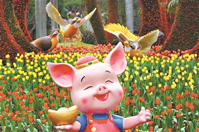 記者看到,主入口有立體綠雕“開放之門”、中軸線入口有立體綠雕“幸福之門”、碼頭休息區有立體綠雕組景“新年快樂”。中軸線星光大道上200米“桔陣”也是一大亮點,通過鯉魚圓盤狀的影壁、桔子組景、動物綠雕等元素打造寓意“年年有余”“步步高”的吉祥迎春之路。