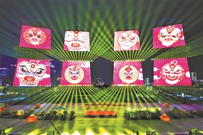 代表嶺南文化的舞獅卡通出現在大屏幕上。