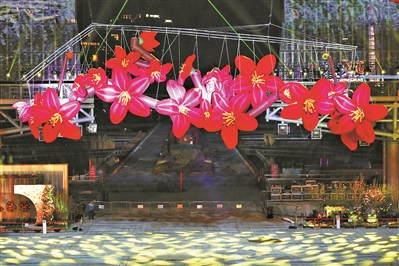 一朵朵巨型木棉花在舞臺中央緩緩升起。