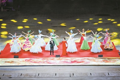 海心沙燈光音樂秀現場舉行了精彩的歌舞表演。