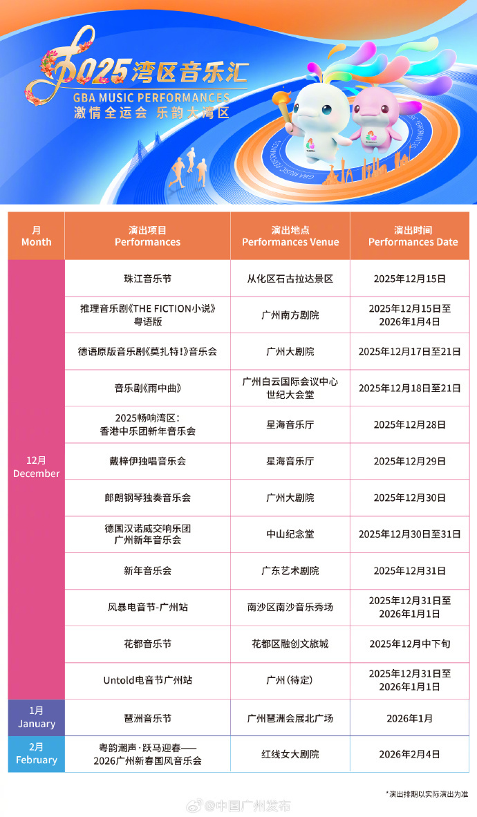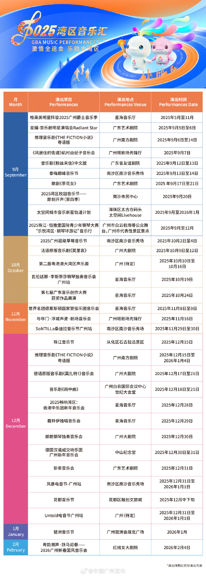 廣州市文化廣電旅游局相關負責人表示,“灣區(qū)音樂匯”是廣州深入貫徹落實國家文化強國戰(zhàn)略、充分發(fā)揮粵港澳大灣區(qū)核心引擎作用的重要實踐,是推進“人文灣區(qū)”建設的關鍵舉措,也是助力十五運會、展示城市文化軟實力的重要窗口。通過構建專業(yè)、開放、多元的音樂交流平臺,廣州將持續(xù)深度鏈接全球優(yōu)質(zhì)藝術資源,全面展現(xiàn)新時代中國形象與灣區(qū)人文精神,不斷為粵港澳大灣區(qū)高質(zhì)量發(fā)展注入文化動能。