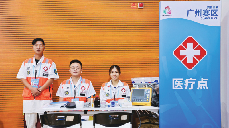 志愿者團隊是保障體系的重要支柱,200多名來自華南師范大學、廣東外語外貿大學等高校的“小海豚”志愿者,在競賽場館、交通樞紐和接待酒店提供熱情服務。其中,廣州城建職業學院大三學生梁小欣在崗位忙碌時不慎扭傷腳踝,醫生建議休息一周,但她依然主動與其他志愿者分擔工作。她說:“工作人員希望我多休息一下,但是我特別珍惜這一次機會,所以還是想要堅持站崗,運動員身體有傷殘依然克服困難追夢的樣子,是我最大的動力。”
