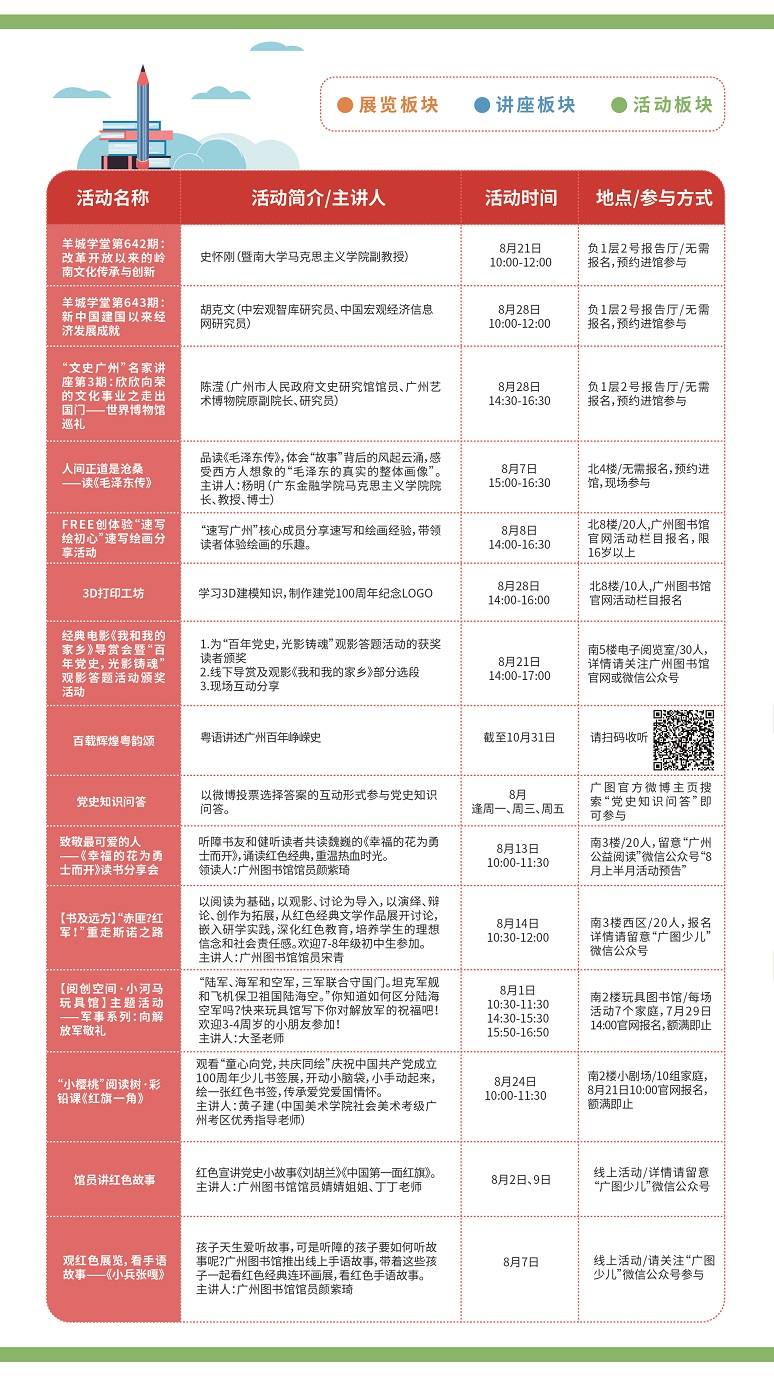 本次活動信息由主辦方提供并由其承擔全部責任。未滿十二周歲的未成年讀者參加活動須事先征得監護人同意并陪同參加。本館僅提供必要的安保服務,讀者自身原因造成的損害與本館無關。活動嘉賓的觀點不代表廣州圖書館立場。讀者參加本次活動則視同了解和接受本提示的內容。