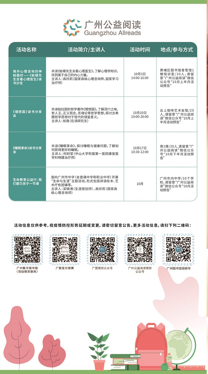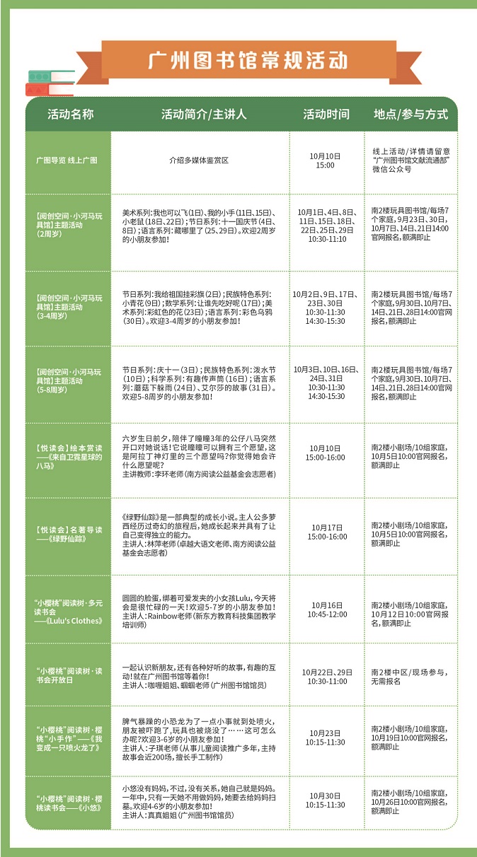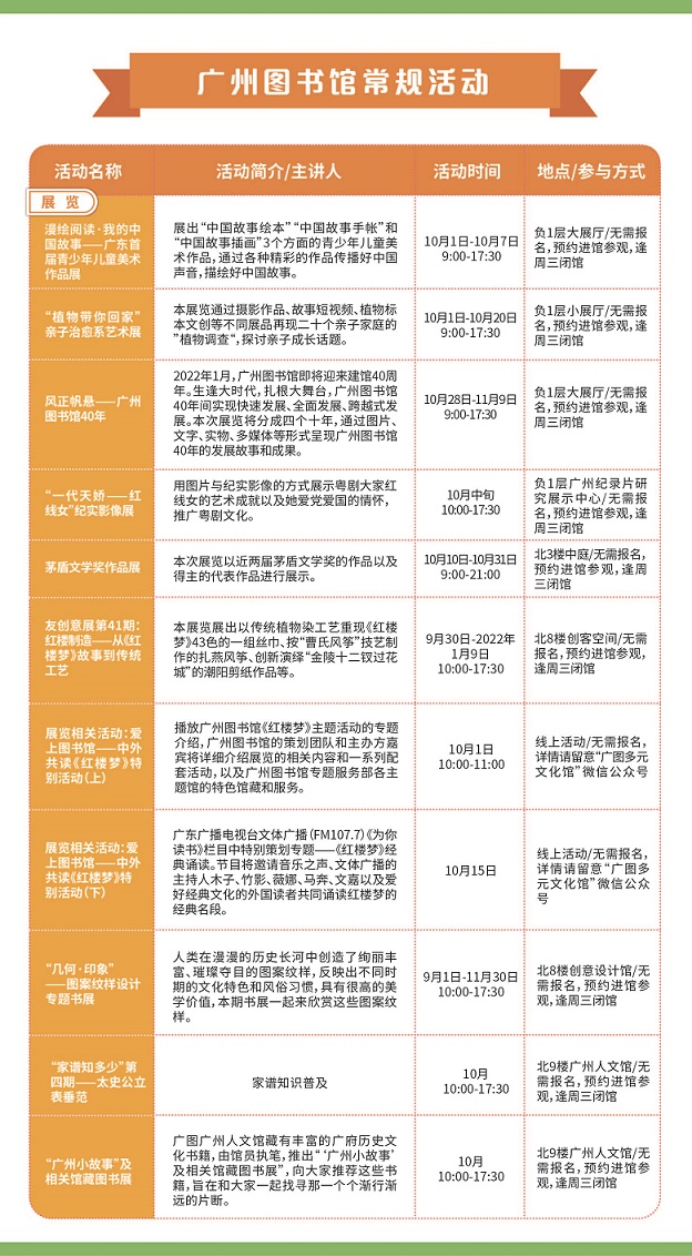 廣州圖書館2021年10月活動安排