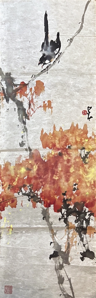《嘉樹舞枝啼》 紙本設(shè)色 羅令潔