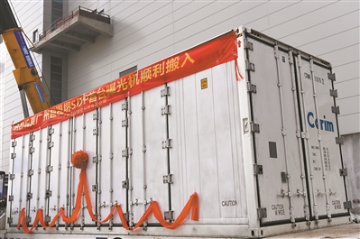 2月14日,項目首臺核心設備曝光機裝在溫控柜中運入產業園區。
