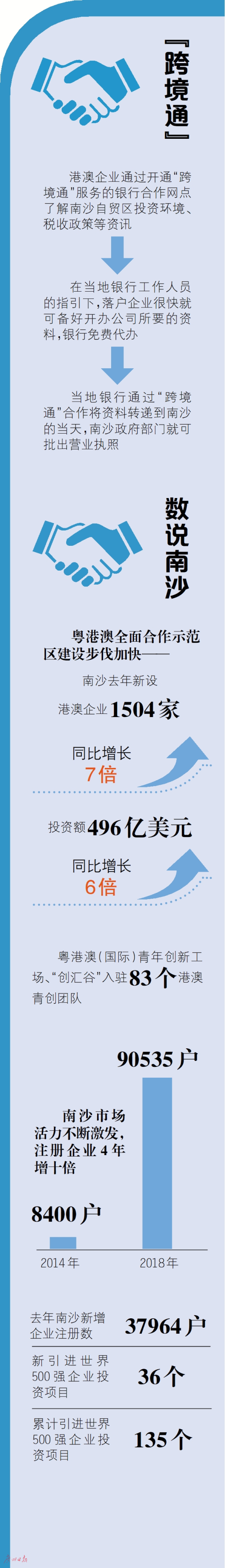 “足不入南沙,當天就辦好了營業執照!”“‘跨境通’打通了南沙和港澳及海外的商事登記障礙,使投資貿易變得‘一家親’了!”近日出爐的廣州營商環境2.0版指出,要推動南沙自貿片區爭創國家級營商環境改革特區和粵港澳全面合作示范區。