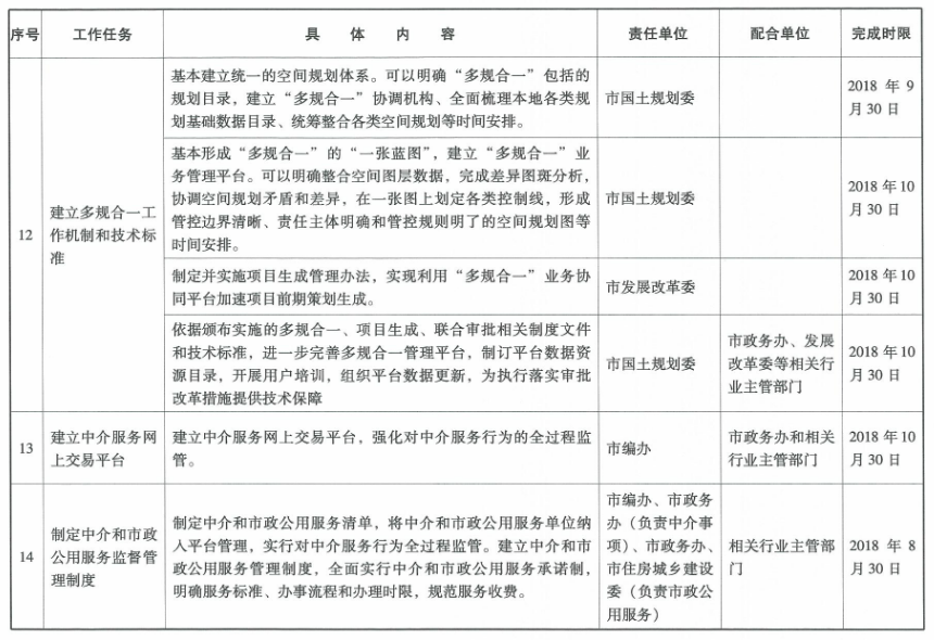 21.深化“一張藍圖”,統籌項目實施。依托“多規合一”管理平臺,統籌各類規劃,統一協調各部門提出的項目建設條件,落實建設條件要求,做到項目策劃全類型覆蓋,策劃全過程督查考核。(牽頭單位:市國土規劃委)