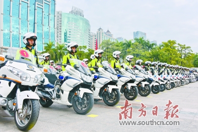 廣東公安交警整裝待發,護航春運道路交通安全。