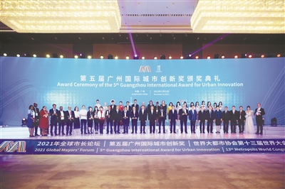 12日晚,第五屆廣州國(guó)際城市創(chuàng)新獎(jiǎng)(簡(jiǎn)稱“廣州獎(jiǎng)”)頒獎(jiǎng)典禮暨2021年全球市長(zhǎng)論壇及世界大都市協(xié)會(huì)第十三屆世界大會(huì)閉幕式在廣州越秀國(guó)際會(huì)議中心線上線下融合舉行。中國(guó)重慶、黎巴嫩丹尼區(qū)、厄瓜多爾基多、奧地利維也納、塞內(nèi)加爾圣路易斯5個(gè)城市榮膺第五屆“廣州獎(jiǎng)”,印度奧里薩邦摘得本屆“網(wǎng)絡(luò)人氣城市”獎(jiǎng)。