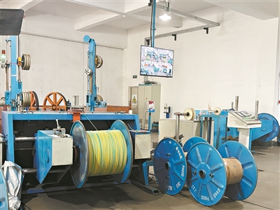 在廣州南洋電纜集團有限公司生產車間內,機器正進行輻照。
