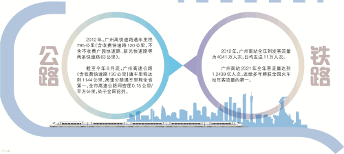 中國高鐵發展飛速日新月異。廣州南站2021年全年客流量達1.2439億人次,連續多年蟬聯全國火車站年客流量的第一。如今,廣州始發的高鐵出省通道已有4條,包括武廣高鐵(京廣高鐵)、廣深港高鐵、貴廣高鐵、南廣高鐵。此外,廣州謀劃了由中心輻射至周邊城市中心“兩縱兩橫”的十字形廣州都市圈軌道交通快線網絡,正全力構建自廣州中心至佛山、東莞中心30分鐘,至中山、珠海、清遠中心60分鐘的軌道經濟生活通勤圈,打造“一張票、一張網、一串城”的大灣區軌道交通新格局。