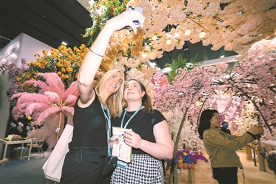 在廣交會展館的一片“花海”前,來自海內外的采購商紛紛掏出手機拍照打卡。