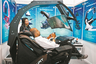 展館中,不少境外采購商都拖著行李箱,還有采購商坐在電動行李箱上“飛馳”。他們有的是剛下飛機就直奔展館,有的則用行李箱裝樣品手冊。