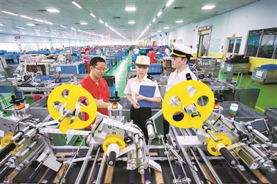 廣州海關關員到重點制造業(yè)企業(yè)調研生產(chǎn)經(jīng)營情況。