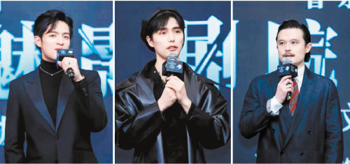 上圖為《劇院魅影》中文版主要演員(從左到右):何亮辰、阿云嘎、劉令飛
