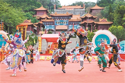 由50人獻藝的潮汕地區英歌舞聲勢浩大。