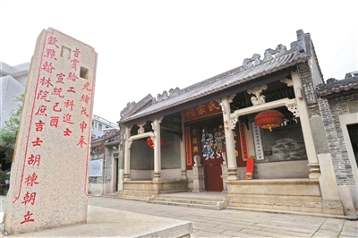 “村子鼎盛時有30多座祠堂,現在還有10多座。”89歲的黃埔村村民梁嘉和告訴記者。記者眼前的晃亭梁公祠古樸大氣,屋脊塑畫繪彩,左右腰墻嵌飾石雕。祠堂內,幾位老人喝茶聊天,好不愜意。“晃亭是黃埔梁氏小宗第14世傳人,名國熾,梁誠是晃亭曾孫。”梁嘉和口中的梁誠是從黃埔村走出的另一位晚清著名外交家。
