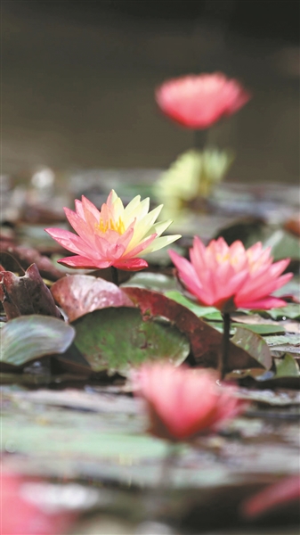 南沙濕地九曲荷花池出現幾株罕見的雙色“萬維莎”睡蓮。