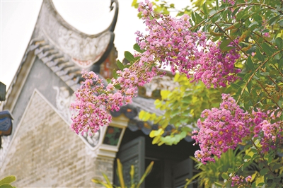 時值仲夏,廣東四大名園之一余蔭山房內成千上萬朵紫薇盛放,將整個園林裝點成了夢幻的海洋。目之所及,層層疊疊的紫薇花各色交雜,在綠葉的掩映下,與古建筑相映襯,如同一幅自然靈動的畫卷,美得讓人移不開視線。