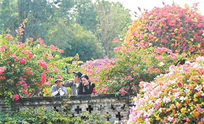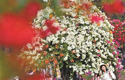 為什么這里的三角梅“火出圈”?來到三角梅盛開之地霓裳園,記者便被那五顏六色的“花團”深深吸引,黃的似橘、粉的似霞、紅的似火……一簇簇三角梅正爭奇斗艷,競相怒放。待到近處,被五彩斑斕裝飾的樹枝隨風搖曳,美不勝收。