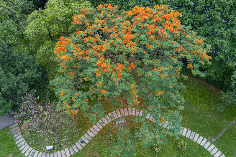 在一些老居民的印象里,20世紀60年代時,5月中旬就能看到鳳凰木開花了,而到了20世紀80年代,鳳凰木花期比20年前推遲了一個節(jié)氣左右,要到5月下旬才開花。今年的花期似乎又有所不同。記錄鳳凰木的花期,再與當年的天氣、氣候相印證,在觀測者眼中是一件非常有趣的事情。