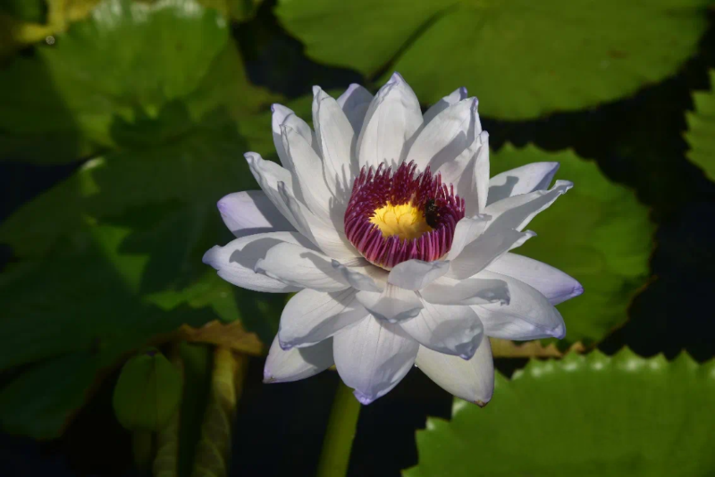 相對(duì)于耐寒睡蓮,熱帶睡蓮花色豐富,可以開(kāi)出藍(lán)色、紫色、紅色、粉紅色,黃色等各色花。同時(shí)熱帶睡蓮株型相對(duì)較大,常常需要足夠的生長(zhǎng)空間,才能開(kāi)出最佳狀態(tài)。華南植物園通過(guò)構(gòu)建不同大小和深度的睡蓮池以滿足各類(lèi)熱帶睡蓮的充分生長(zhǎng)需求,讓游客在這里欣賞到熱帶睡蓮各個(gè)品種的最美狀態(tài)。