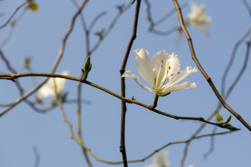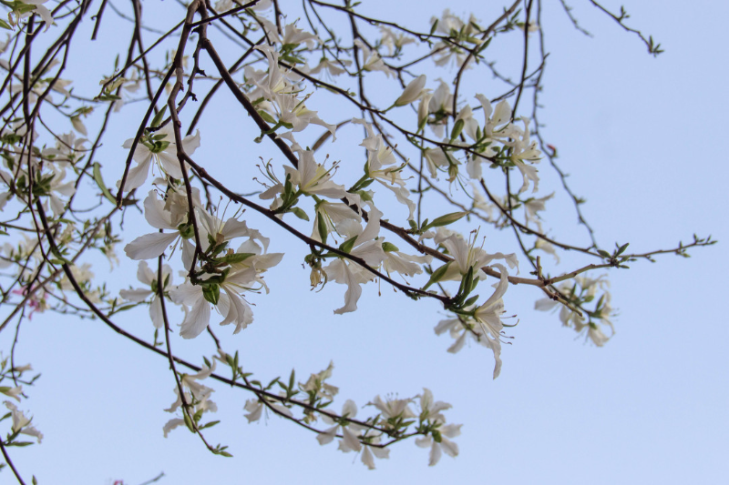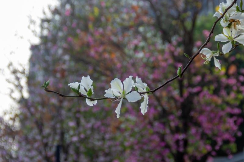 穿行在云城西路、云城東路、齊心路、云城中一路、廣云路、白云大道北等路段,隨處可見宮粉紫荊的倩影。它們或白如雪,或粉似霞,在春風中時而搖曳生姿,時而落英繽紛,美不勝收。