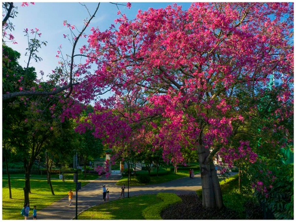 異木棉,又叫美人樹,是木棉科異木棉屬。多年生半常綠或落葉喬木,高8~15米,樹干綠色,挺拔,枝條輪生,與木棉樹相似,但側(cè)枝呈斜水平狀向上開展,樹皮密生瘤狀刺。原產(chǎn)南美洲,現(xiàn)在中國臺灣、廣東、福建、湖北等南方城市廣泛栽培。