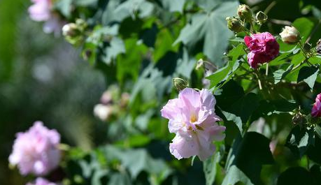 清新自然、秀麗淡雅,黃埔區創業公園湖畔上的木芙蓉盛開了!開滿碩大花朵的木芙蓉向陽而開,隨風搖曳,在藍天之下,或粉或紅的花朵格外艷麗。木芙蓉花期8到10月,其花或白或粉或赤,皎若芙蓉出水,艷似菡萏展瓣,故有“芙蓉花”之稱,又因其生于陸地,為木本植物,故又名“木芙蓉”。