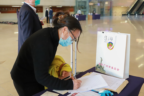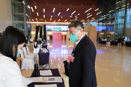 在報(bào)到現(xiàn)場(chǎng),政協(xié)委員們?cè)诠ぷ魅藛T的指引下,嚴(yán)格落實(shí)戴口罩、領(lǐng)取防疫健康包等疫情防控措施,有條不紊地辦理報(bào)到手續(xù)、領(lǐng)取證件和會(huì)議資料。報(bào)到現(xiàn)場(chǎng)氣氛熱烈、秩序井然。