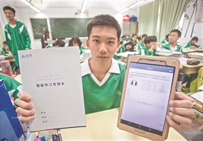 廣州成為全國“智慧教育示范區”,圖為執信中學的學生示范使用智能筆和智能本。(資料圖片)