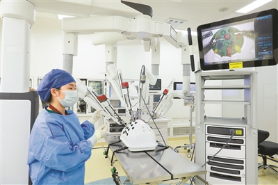 醫生演示第四代達芬奇手術機器人的工作狀態