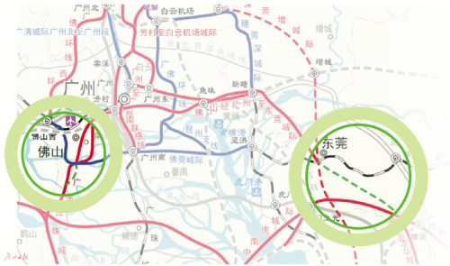 佛穗莞城際不僅要往西把江門珠海納入“朋友圈”,往東還在爭取連上深圳。根據國家發改委批復,佛穗莞城際東段僅到東莞,至于東莞至深圳,近期實施常龍城際(東莞常平至深圳龍華、福田)。按照原來的規劃,兩條城際在東莞無法銜接。