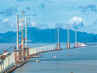 珠江口東西兩岸的城市群如同一顆顆珍珠鑲嵌在江畔,璀璨而奪目。經濟總量超過13萬億元的粵港澳大灣區,是我國開放程度最高、經濟活力最強的區域之一。近年來,粵港澳大灣區不斷推進兩岸基礎設施互聯互通,搭起一座又一座跨海大橋,建造一個又一個超級工程,刷新一項又一項世界紀錄。