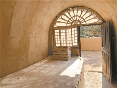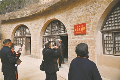 參觀者在楊家嶺革命舊址的周恩來舊居參觀。
