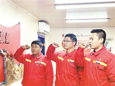 1205鉆井隊部分黨員重溫入黨誓詞。