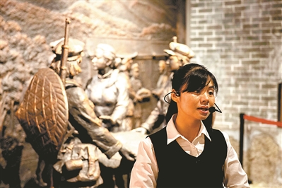 徐解秀的曾孫女朱淑華在“半條被子的溫暖”專題陳列館講解“半條被子”的故事。