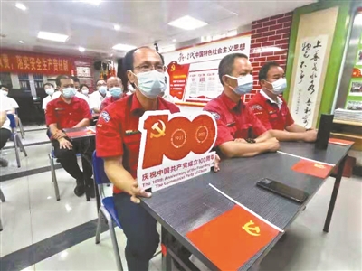 廣州市荔灣區組織全體黨員集中收聽收看慶祝中國共產黨成立100周年大會直播。