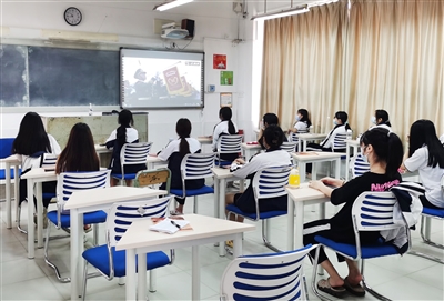 廣州市工貿技師學院學生觀看慶祝中國共產黨成立100周年大會直播。