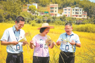 農戶與銀行小額貸款信貸員一起分享收獲的喜悅