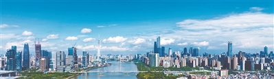 在藍天白云的映襯下,廣州珠江兩岸景色優(yōu)美