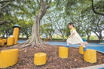 2023年,廣州市新建碧道213公里,累計建設碧道1242公里。圖為小朋友在閱江路碧道玩耍。