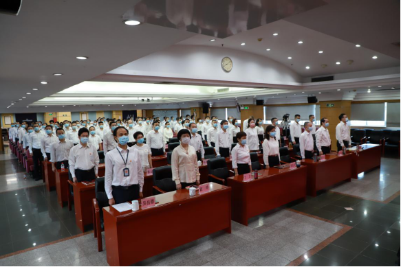 7月1日上午,廣州市市場監管局組織全體黨員干部集中收看慶祝中國共產黨成立100周年大會。在42個收看點,1665名黨員干部,統一身著白色襯衣、佩戴黨員徽章、全程佩戴口罩,神色莊嚴的全程收看大會,深刻學習領會習近平總書記重要講話精神,用歷史映照現實、遠觀未來。